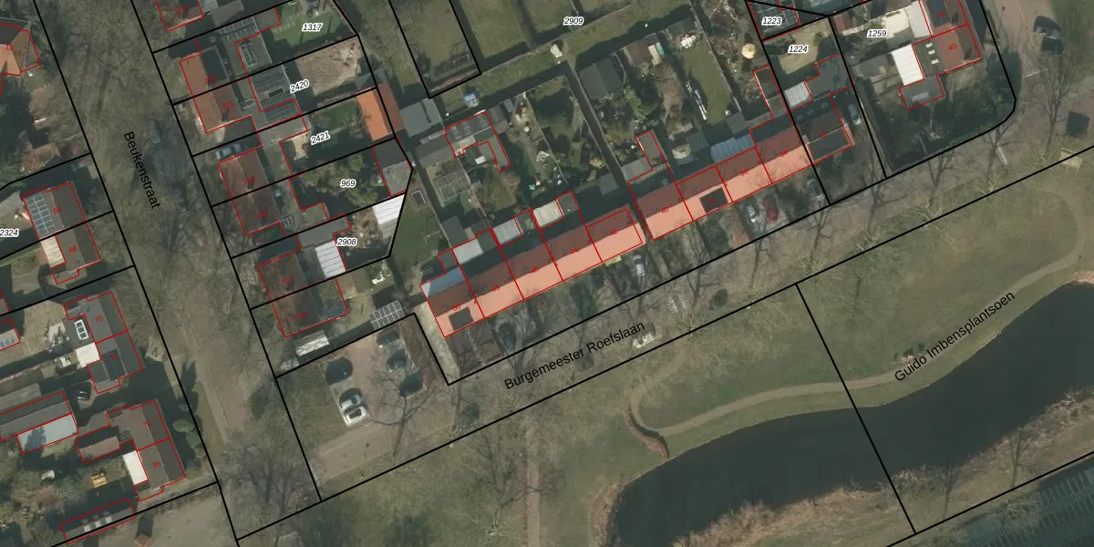 Het perceel waarop Burgemeester Roefslaan 46 staat heeft een oppervlakte van 9004 m². Dit is een zeer groot perceel. De perceeloppervlakte wordt geregistreerd door het Kadaster. Gedetailleerde informatie over de maten van dit perceel kunt u vinden in het rapport Kadastrale kaart met maatvoering van Burgemeester Roefslaan 46.