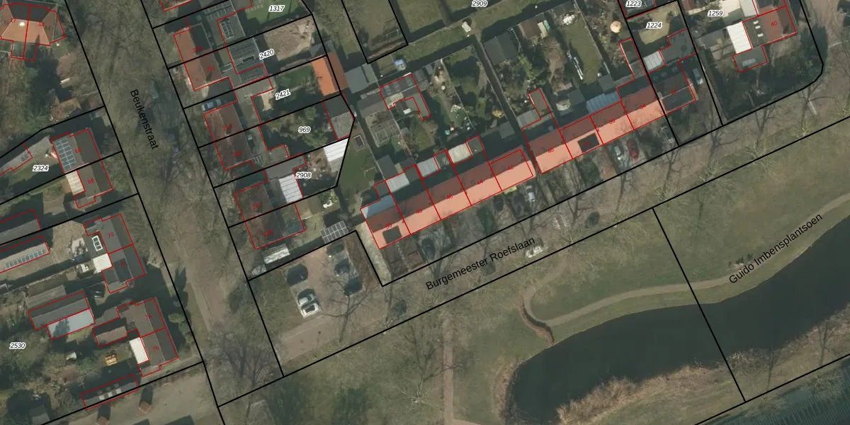Het perceel waarop Burgemeester Roefslaan 48 staat heeft een oppervlakte van 9004 m². Dit is een zeer groot perceel. De perceeloppervlakte wordt geregistreerd door het Kadaster. Gedetailleerde informatie over de maten van dit perceel kunt u vinden in het rapport Kadastrale kaart met maatvoering van Burgemeester Roefslaan 48.
