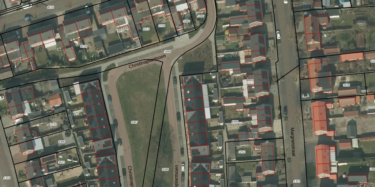 Het perceel waarop Christinaplantsoen 28 staat heeft een oppervlakte van 5130 m². Dit is een zeer groot perceel. De perceeloppervlakte wordt geregistreerd door het Kadaster. Gedetailleerde informatie over de maten van dit perceel kunt u vinden in het rapport Kadastrale kaart met maatvoering van Christinaplantsoen 28.