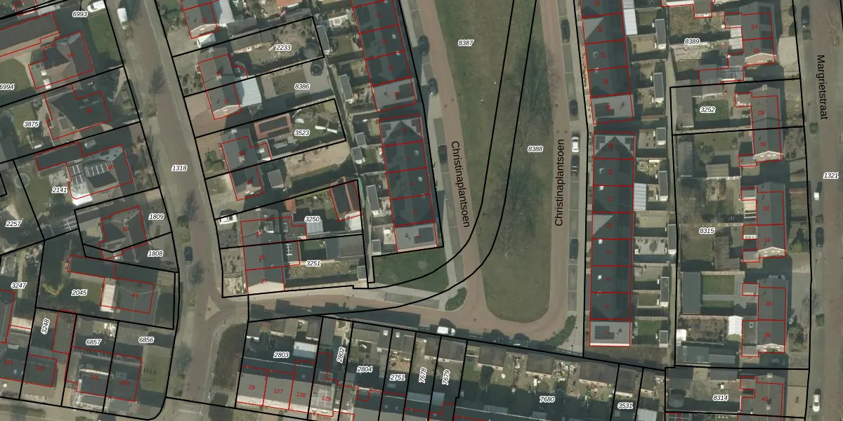 Het perceel waarop Christinaplantsoen 3 staat heeft een oppervlakte van 2755 m². Dit is een zeer groot perceel. De perceeloppervlakte wordt geregistreerd door het Kadaster. Gedetailleerde informatie over de maten van dit perceel kunt u vinden in het rapport Kadastrale kaart met maatvoering van Christinaplantsoen 3.