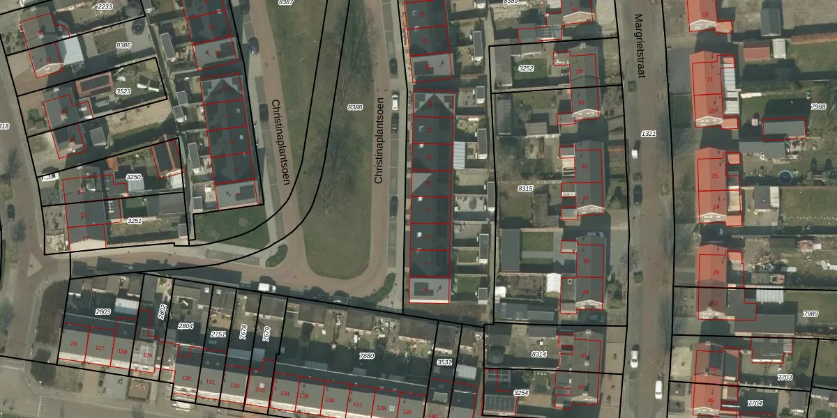 Het perceel waarop Christinaplantsoen 8 staat heeft een oppervlakte van 5130 m². Dit is een zeer groot perceel. De perceeloppervlakte wordt geregistreerd door het Kadaster. Gedetailleerde informatie over de maten van dit perceel kunt u vinden in het rapport Kadastrale kaart met maatvoering van Christinaplantsoen 8.