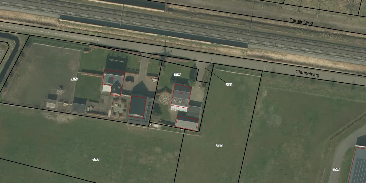 Het perceel waarop Clarinetweg 32 staat heeft een oppervlakte van 893 m². Dit is een groot perceel. De perceeloppervlakte wordt geregistreerd door het Kadaster. Gedetailleerde informatie over de maten van dit perceel kunt u vinden in het rapport Kadastrale kaart met maatvoering van Clarinetweg 32.