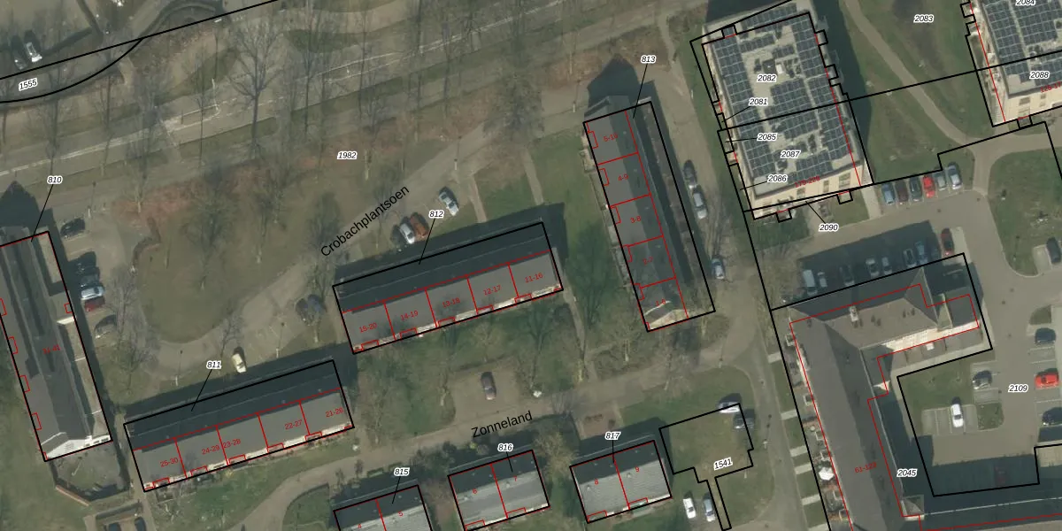 Het perceel waarop Crobachplantsoen 16 staat heeft een oppervlakte van 547 m². Dit is een groot perceel. De perceeloppervlakte wordt geregistreerd door het Kadaster. Gedetailleerde informatie over de maten van dit perceel kunt u vinden in het rapport Kadastrale kaart met maatvoering van Crobachplantsoen 16.
