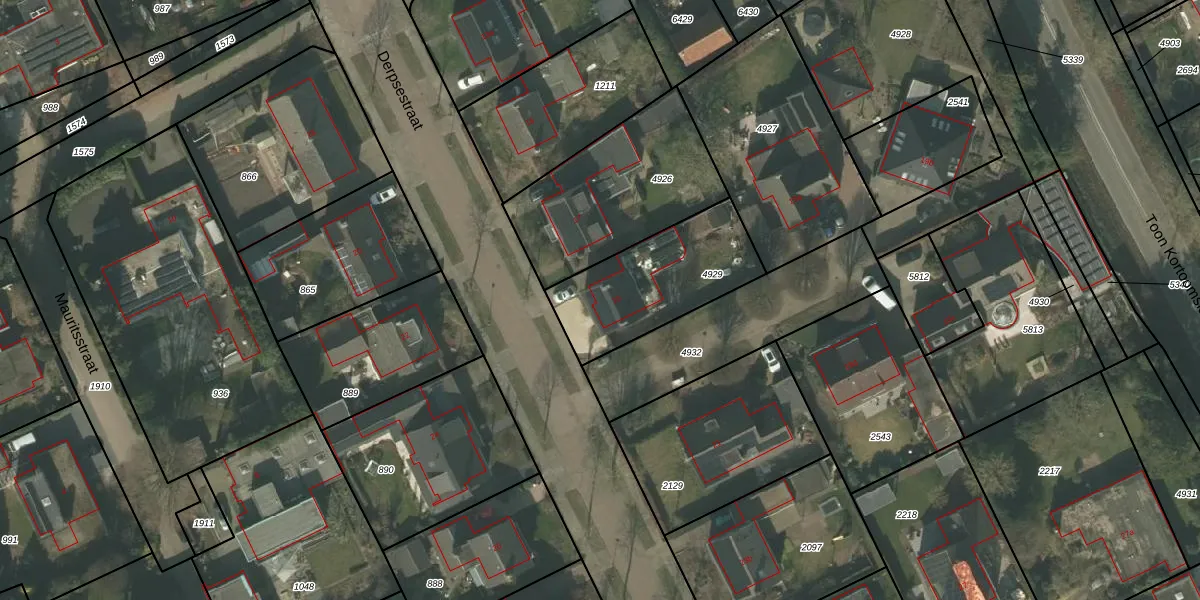 Derpsestraat 19 is gelegen op kadastraal perceel DNE00L4929. Deze kadastrale aanduiding is uniek en wordt gebruikt door het Kadaster om eigendomsrechten en andere zakelijke rechten vast te leggen. Het perceel maakt onderdeel uit van de kadastrale gemeente Deurne.
