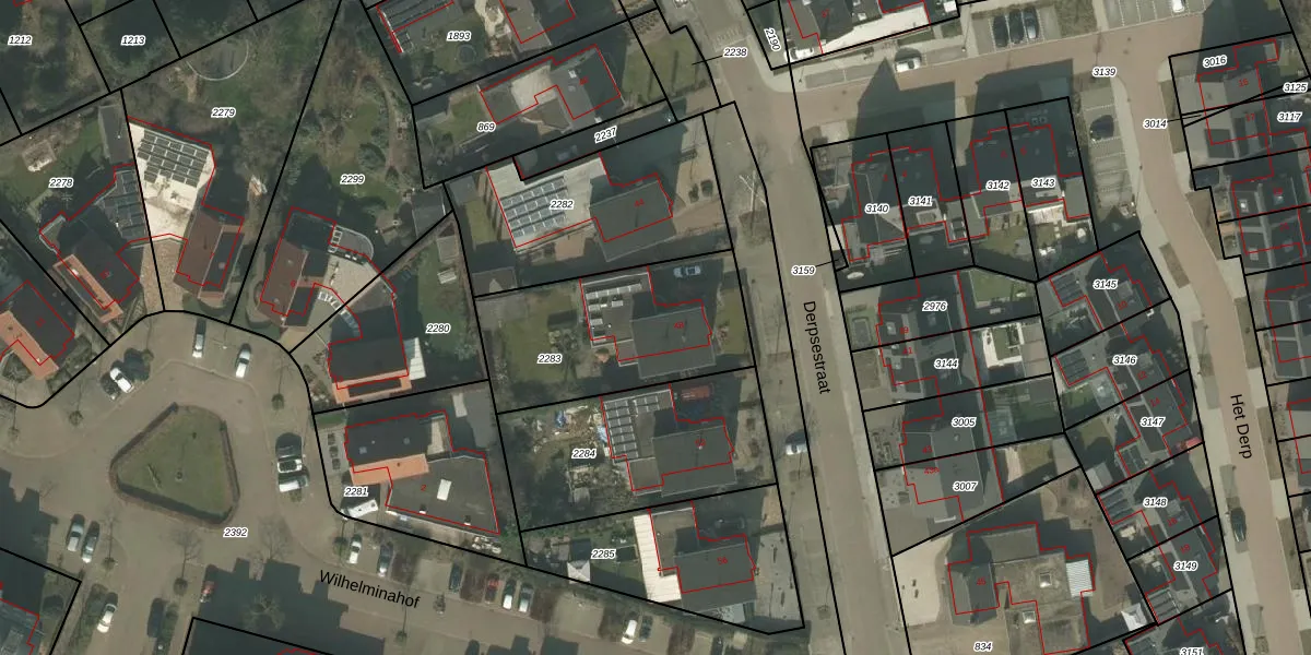 Het perceel waarop Derpsestraat 48 staat heeft een oppervlakte van 734 m². Dit is een groot perceel. De perceeloppervlakte wordt geregistreerd door het Kadaster. Gedetailleerde informatie over de maten van dit perceel kunt u vinden in het rapport Kadastrale kaart met maatvoering van Derpsestraat 48.