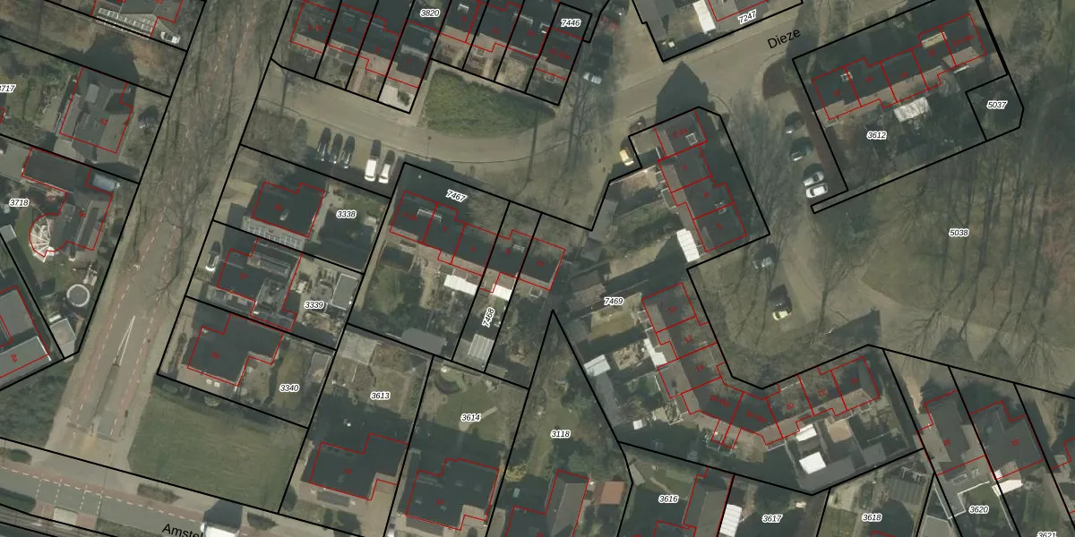 Het perceel waarop Dieze 10 staat heeft een oppervlakte van 2535 m². Dit is een zeer groot perceel. De perceeloppervlakte wordt geregistreerd door het Kadaster. Gedetailleerde informatie over de maten van dit perceel kunt u vinden in het rapport Kadastrale kaart met maatvoering van Dieze 10.