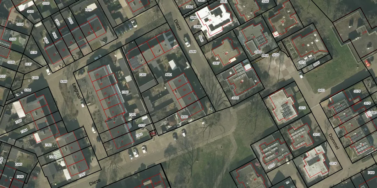 Het perceel waarop Dieze 19 staat heeft een oppervlakte van 1089 m². Dit is een zeer groot perceel. De perceeloppervlakte wordt geregistreerd door het Kadaster. Gedetailleerde informatie over de maten van dit perceel kunt u vinden in het rapport Kadastrale kaart met maatvoering van Dieze 19.