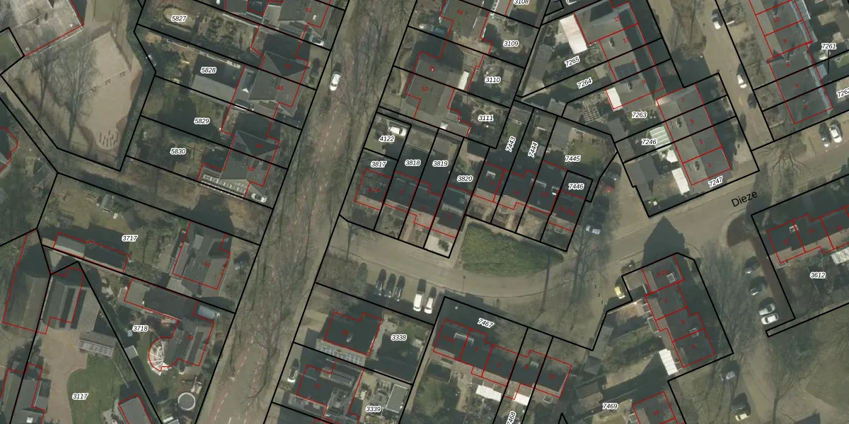 Het perceel waarop Dieze 5 staat heeft een oppervlakte van 175 m². Dit is een middelgroot perceel. De perceeloppervlakte wordt geregistreerd door het Kadaster. Gedetailleerde informatie over de maten van dit perceel kunt u vinden in het rapport Kadastrale kaart met maatvoering van Dieze 5.