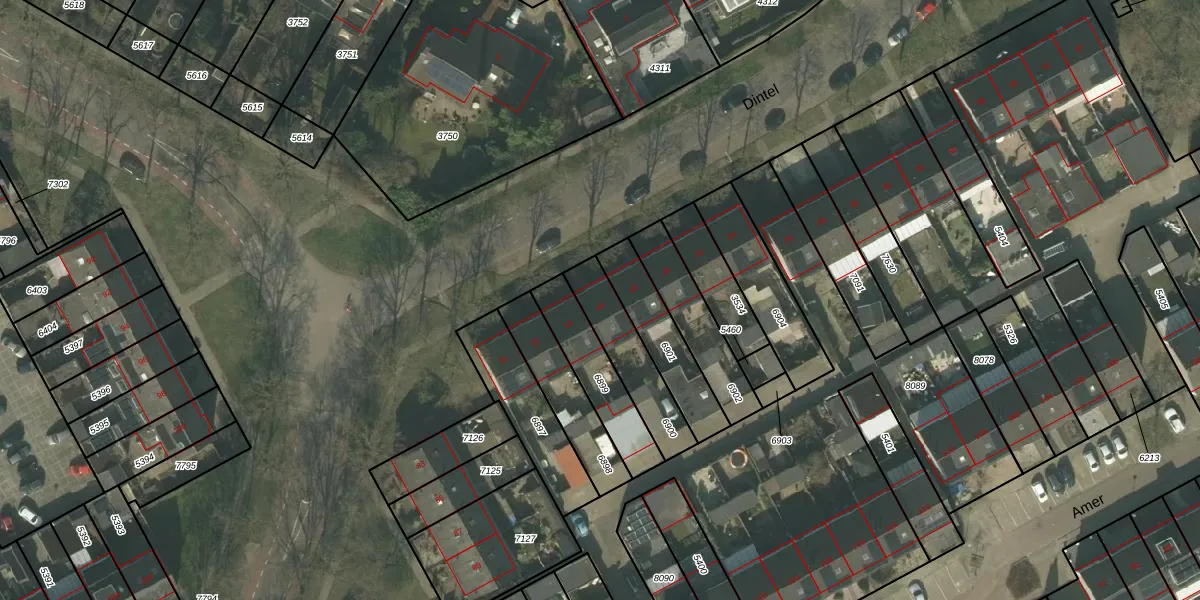 Het perceel waarop Dintel 16 staat heeft een oppervlakte van 222 m². Dit is een middelgroot perceel. De perceeloppervlakte wordt geregistreerd door het Kadaster. Gedetailleerde informatie over de maten van dit perceel kunt u vinden in het rapport Kadastrale kaart met maatvoering van Dintel 16.