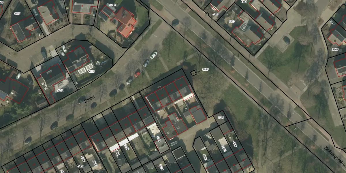 Het perceel waarop Dintel 42 staat heeft een oppervlakte van 4216 m². Dit is een zeer groot perceel. De perceeloppervlakte wordt geregistreerd door het Kadaster. Gedetailleerde informatie over de maten van dit perceel kunt u vinden in het rapport Kadastrale kaart met maatvoering van Dintel 42.