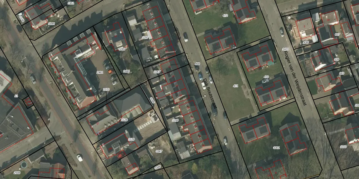 Het perceel waarop Dirk Boutsstraat 16 staat heeft een oppervlakte van 1242 m². Dit is een zeer groot perceel. De perceeloppervlakte wordt geregistreerd door het Kadaster. Gedetailleerde informatie over de maten van dit perceel kunt u vinden in het rapport Kadastrale kaart met maatvoering van Dirk Boutsstraat 16.