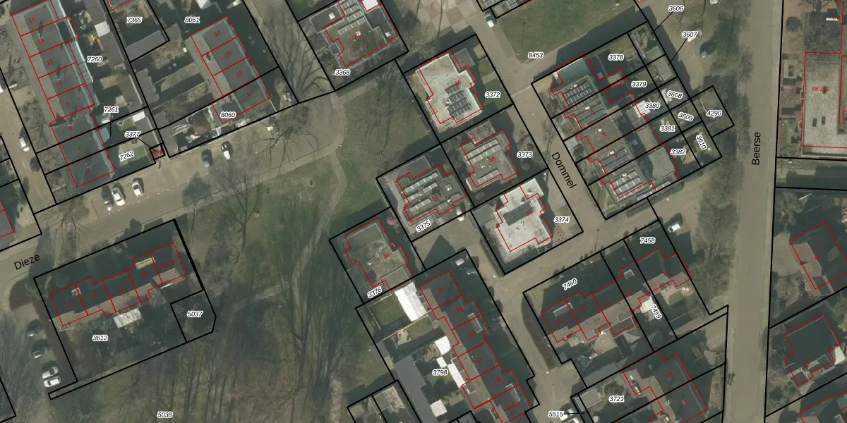 Het perceel waarop Dommel 32 staat heeft een oppervlakte van 296 m². Dit is een middelgroot perceel. De perceeloppervlakte wordt geregistreerd door het Kadaster. Gedetailleerde informatie over de maten van dit perceel kunt u vinden in het rapport Kadastrale kaart met maatvoering van Dommel 32.
