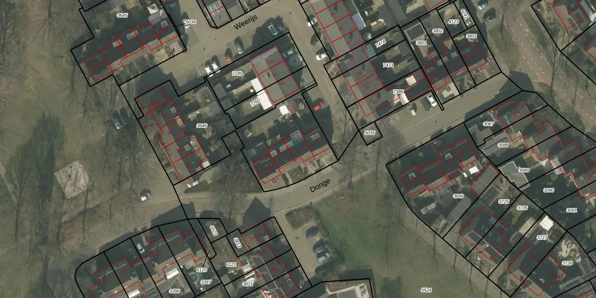 Het perceel waarop Donge 25 staat heeft een oppervlakte van 1438 m². Dit is een zeer groot perceel. De perceeloppervlakte wordt geregistreerd door het Kadaster. Gedetailleerde informatie over de maten van dit perceel kunt u vinden in het rapport Kadastrale kaart met maatvoering van Donge 25.