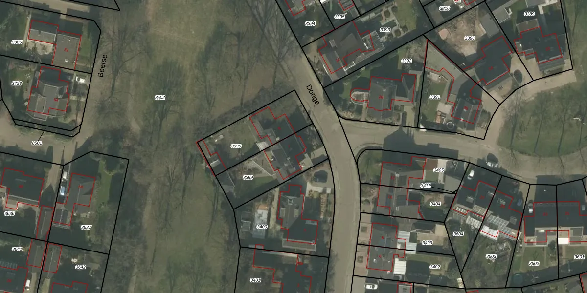 Gebruik de zoekbalk of klik op een perceel voor informatie over de adressen binnen dit perceel.