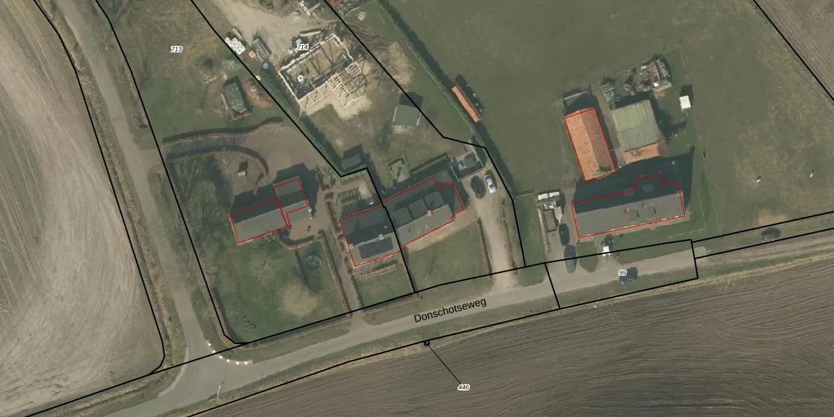 Donschotseweg 8 is gelegen op kadastraal perceel DNE00R714. Deze kadastrale aanduiding is uniek en wordt gebruikt door het Kadaster om eigendomsrechten en andere zakelijke rechten vast te leggen. Het perceel maakt onderdeel uit van de kadastrale gemeente Deurne.