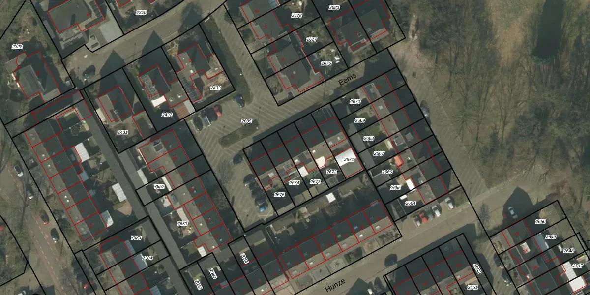 Het perceel waarop Eems 19 staat heeft een oppervlakte van 168 m². Dit is een middelgroot perceel. De perceeloppervlakte wordt geregistreerd door het Kadaster. Gedetailleerde informatie over de maten van dit perceel kunt u vinden in het rapport Kadastrale kaart met maatvoering van Eems 19.