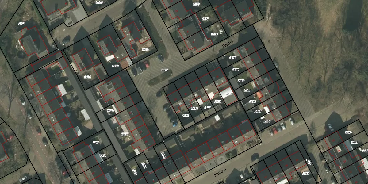 Het perceel waarop Eems 21 staat heeft een oppervlakte van 168 m². Dit is een middelgroot perceel. De perceeloppervlakte wordt geregistreerd door het Kadaster. Gedetailleerde informatie over de maten van dit perceel kunt u vinden in het rapport Kadastrale kaart met maatvoering van Eems 21.