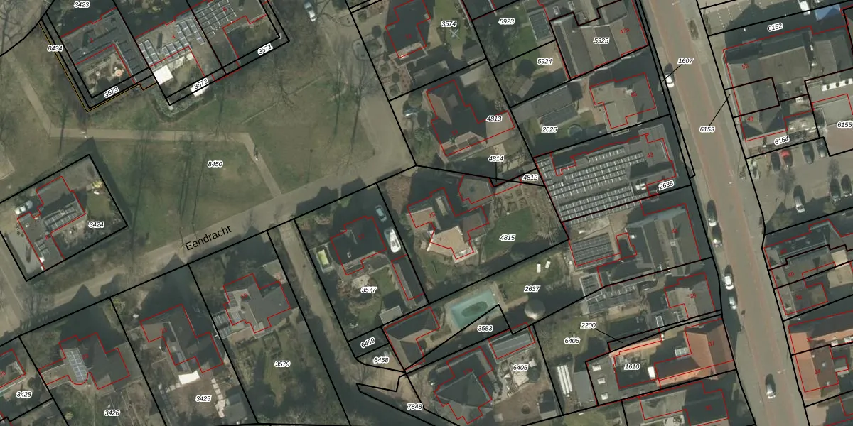 Eendracht 15 is gelegen op kadastraal perceel DNE00L4815. Deze kadastrale aanduiding is uniek en wordt gebruikt door het Kadaster om eigendomsrechten en andere zakelijke rechten vast te leggen. Het perceel maakt onderdeel uit van de kadastrale gemeente Deurne.