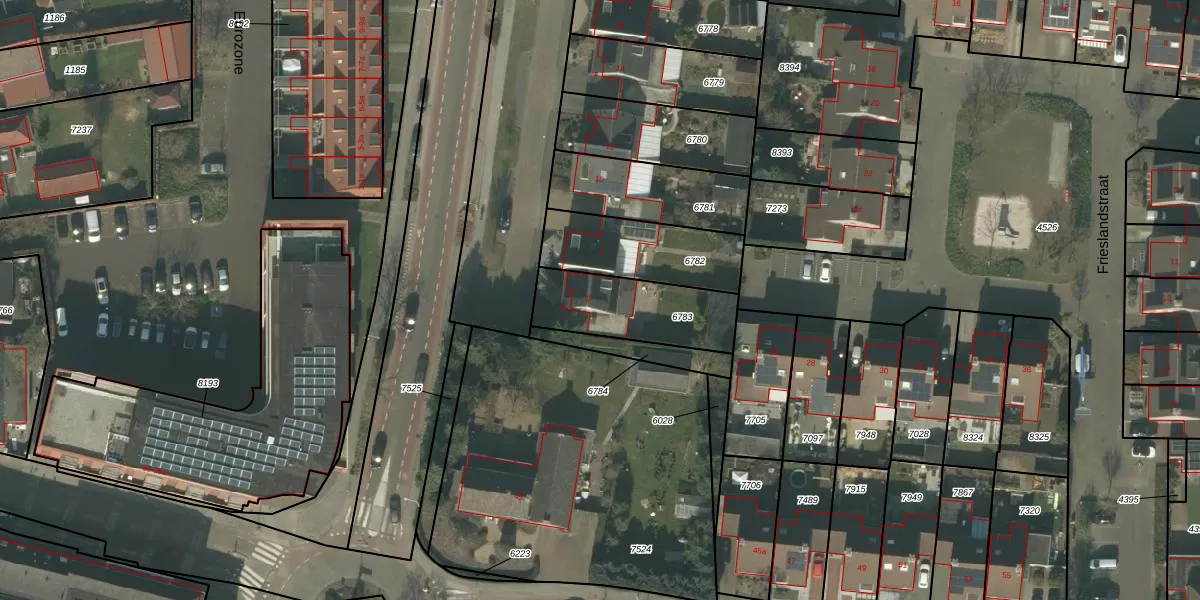 Gebruik de zoekbalk of klik op een perceel voor informatie over de adressen binnen dit perceel.