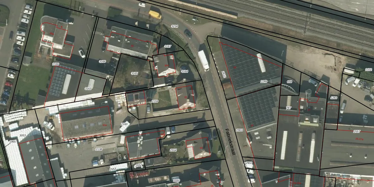 Het perceel waarop Fabriekstraat 32 staat heeft een oppervlakte van 656 m². Dit is een groot perceel. De perceeloppervlakte wordt geregistreerd door het Kadaster. Gedetailleerde informatie over de maten van dit perceel kunt u vinden in het rapport Kadastrale kaart met maatvoering van Fabriekstraat 32.