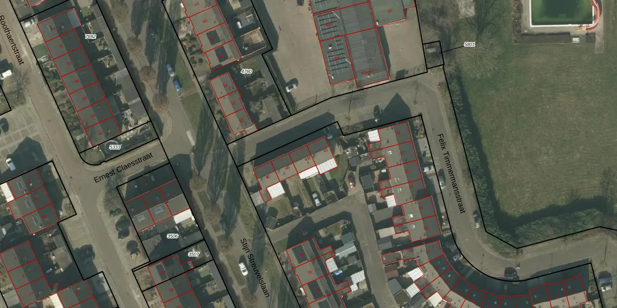 Het perceel waarop Felix Timmermansstraat 43 staat heeft een oppervlakte van 8356 m². Dit is een zeer groot perceel. De perceeloppervlakte wordt geregistreerd door het Kadaster. Gedetailleerde informatie over de maten van dit perceel kunt u vinden in het rapport Kadastrale kaart met maatvoering van Felix Timmermansstraat 43.