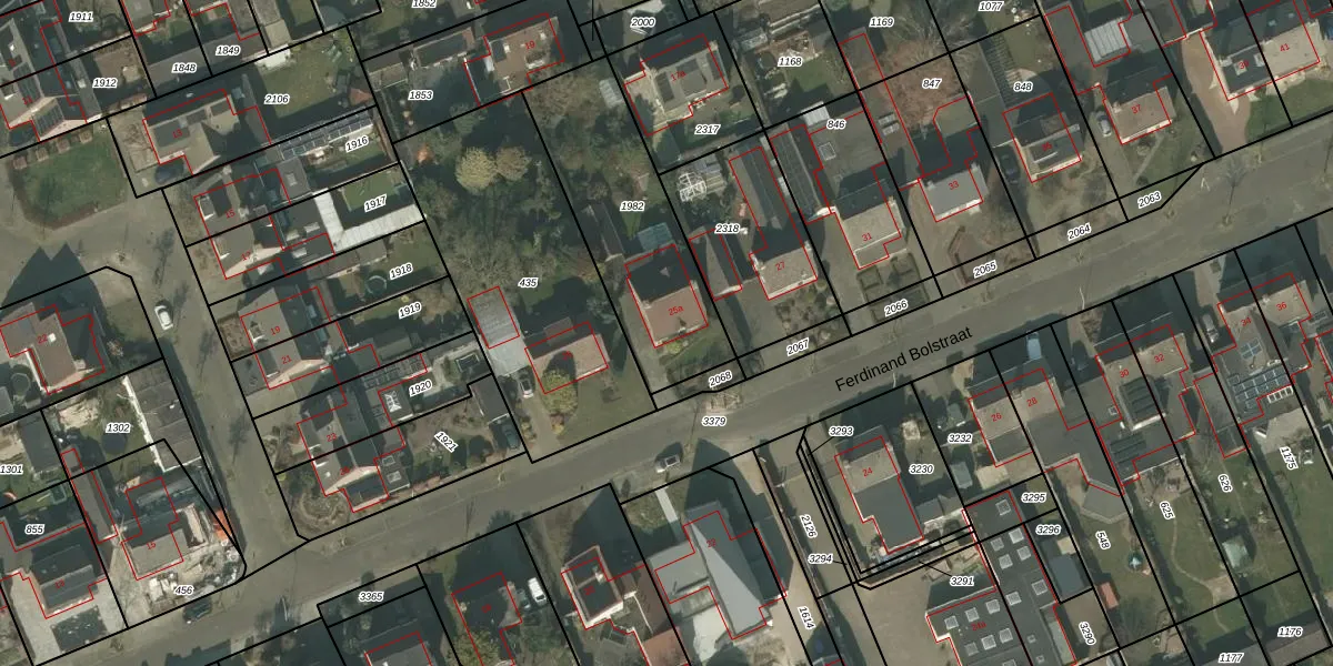 Het perceel waarop Ferdinand Bolstraat 25-a staat heeft een oppervlakte van 693 m². Dit is een groot perceel. De perceeloppervlakte wordt geregistreerd door het Kadaster. Gedetailleerde informatie over de maten van dit perceel kunt u vinden in het rapport Kadastrale kaart met maatvoering van Ferdinand Bolstraat 25-a.