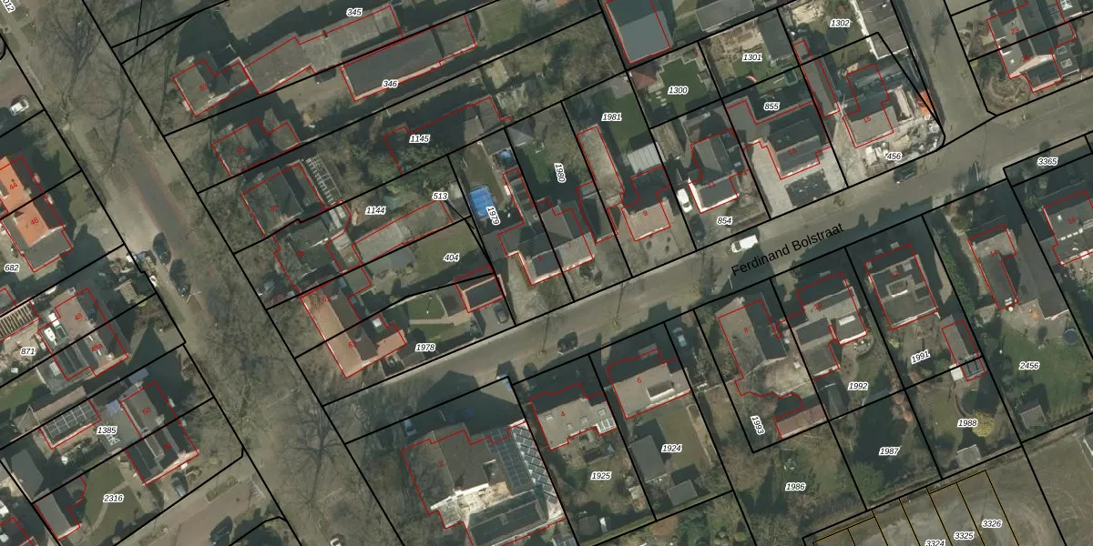 Het perceel waarop Ferdinand Bolstraat 5 staat heeft een oppervlakte van 388 m². Dit is een groot perceel. De perceeloppervlakte wordt geregistreerd door het Kadaster. Gedetailleerde informatie over de maten van dit perceel kunt u vinden in het rapport Kadastrale kaart met maatvoering van Ferdinand Bolstraat 5.