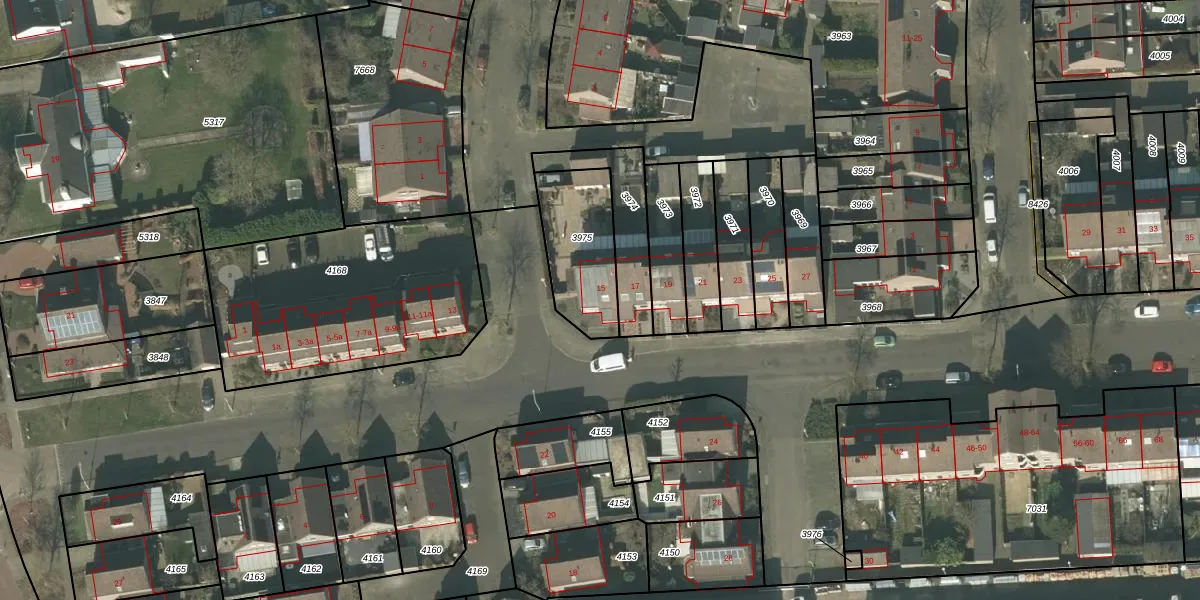 Gebruik de zoekbalk of klik op een perceel voor informatie over de adressen binnen dit perceel.