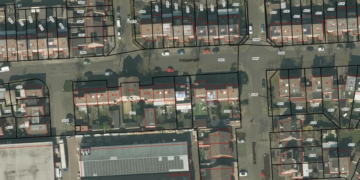 Gebruik de zoekbalk of klik op een perceel voor informatie over de adressen binnen dit perceel.