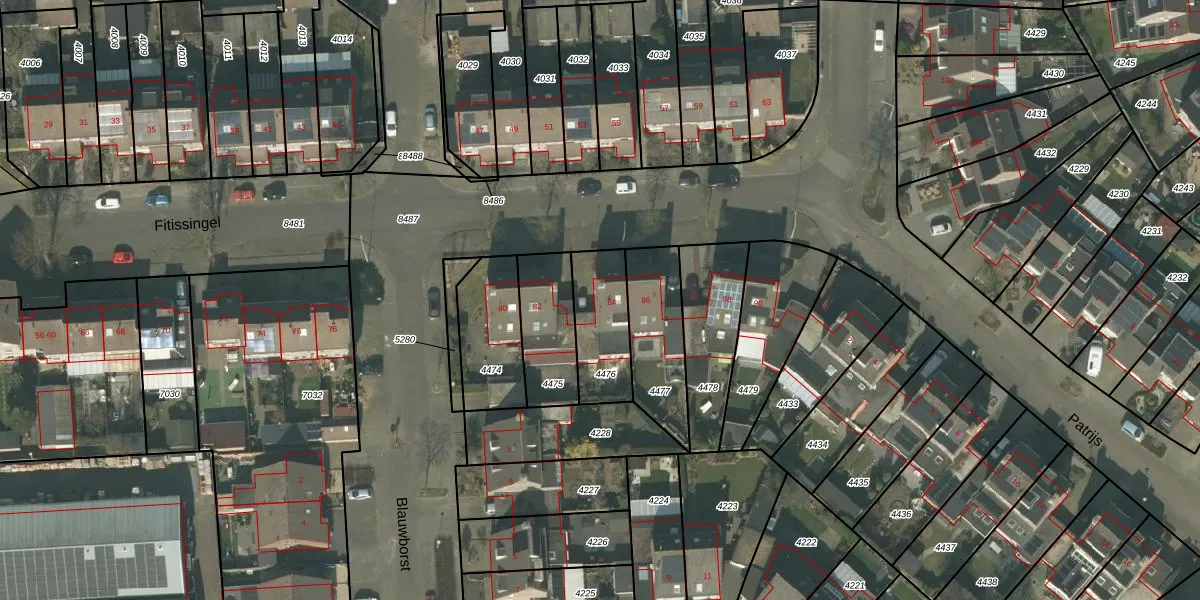 Fitissingel 84 is gelegen op kadastraal perceel DNE00L4476. Deze kadastrale aanduiding is uniek en wordt gebruikt door het Kadaster om eigendomsrechten en andere zakelijke rechten vast te leggen. Het perceel maakt onderdeel uit van de kadastrale gemeente Deurne.