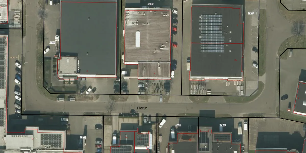 Het perceel waarop Florijn 4 staat heeft een oppervlakte van 2510 m². Dit is een zeer groot perceel. De perceeloppervlakte wordt geregistreerd door het Kadaster. Gedetailleerde informatie over de maten van dit perceel kunt u vinden in het rapport Kadastrale kaart met maatvoering van Florijn 4.