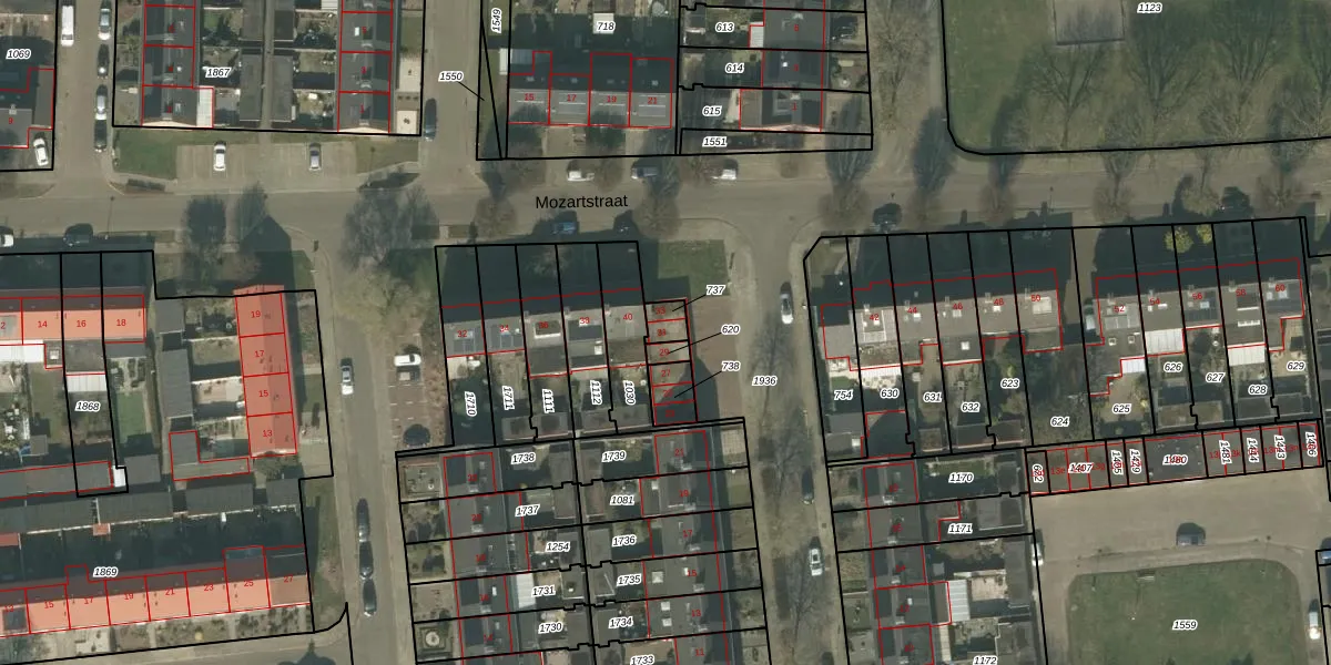 Het perceel waarop Franckstraat 31 staat heeft een oppervlakte van 39 m². Dit is een klein perceel. De perceeloppervlakte wordt geregistreerd door het Kadaster. Gedetailleerde informatie over de maten van dit perceel kunt u vinden in het rapport Kadastrale kaart met maatvoering van Franckstraat 31.