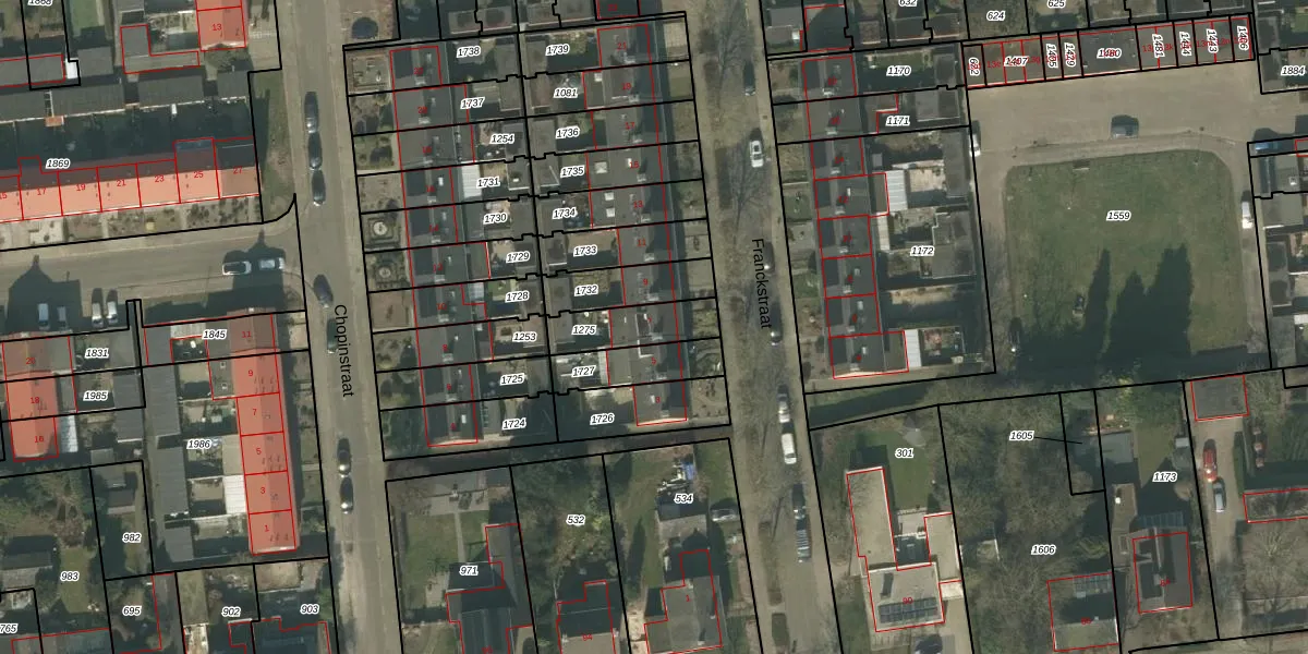 Het perceel waarop Franckstraat 7 staat heeft een oppervlakte van 160 m². Dit is een middelgroot perceel. De perceeloppervlakte wordt geregistreerd door het Kadaster. Gedetailleerde informatie over de maten van dit perceel kunt u vinden in het rapport Kadastrale kaart met maatvoering van Franckstraat 7.
