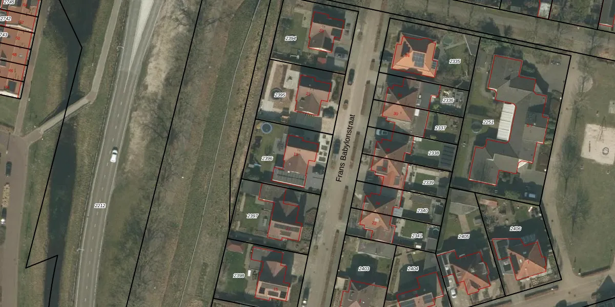 Frans Babylonstraat 19 is gelegen op kadastraal perceel DNE00B2396. Deze kadastrale aanduiding is uniek en wordt gebruikt door het Kadaster om eigendomsrechten en andere zakelijke rechten vast te leggen. Het perceel maakt onderdeel uit van de kadastrale gemeente Deurne.