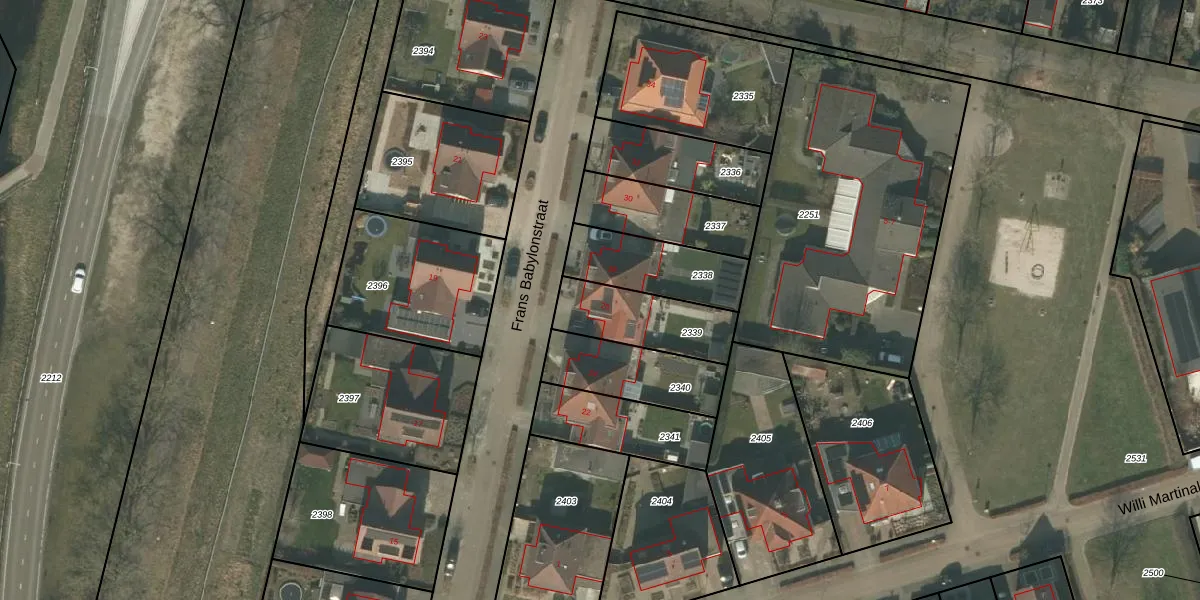 Frans Babylonstraat 26 is gelegen op kadastraal perceel DNE00B2339. Deze kadastrale aanduiding is uniek en wordt gebruikt door het Kadaster om eigendomsrechten en andere zakelijke rechten vast te leggen. Het perceel maakt onderdeel uit van de kadastrale gemeente Deurne.