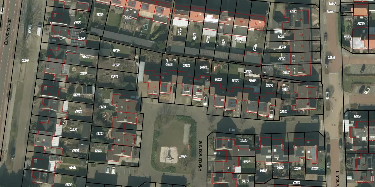 Het perceel waarop Frieslandstraat 12 staat heeft een oppervlakte van 230 m². Dit is een middelgroot perceel. De perceeloppervlakte wordt geregistreerd door het Kadaster. Gedetailleerde informatie over de maten van dit perceel kunt u vinden in het rapport Kadastrale kaart met maatvoering van Frieslandstraat 12.