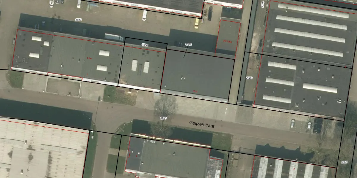 Het perceel waarop Geijzerstraat 1-h staat heeft een oppervlakte van 960 m². Dit is een groot perceel. De perceeloppervlakte wordt geregistreerd door het Kadaster. Gedetailleerde informatie over de maten van dit perceel kunt u vinden in het rapport Kadastrale kaart met maatvoering van Geijzerstraat 1-h.