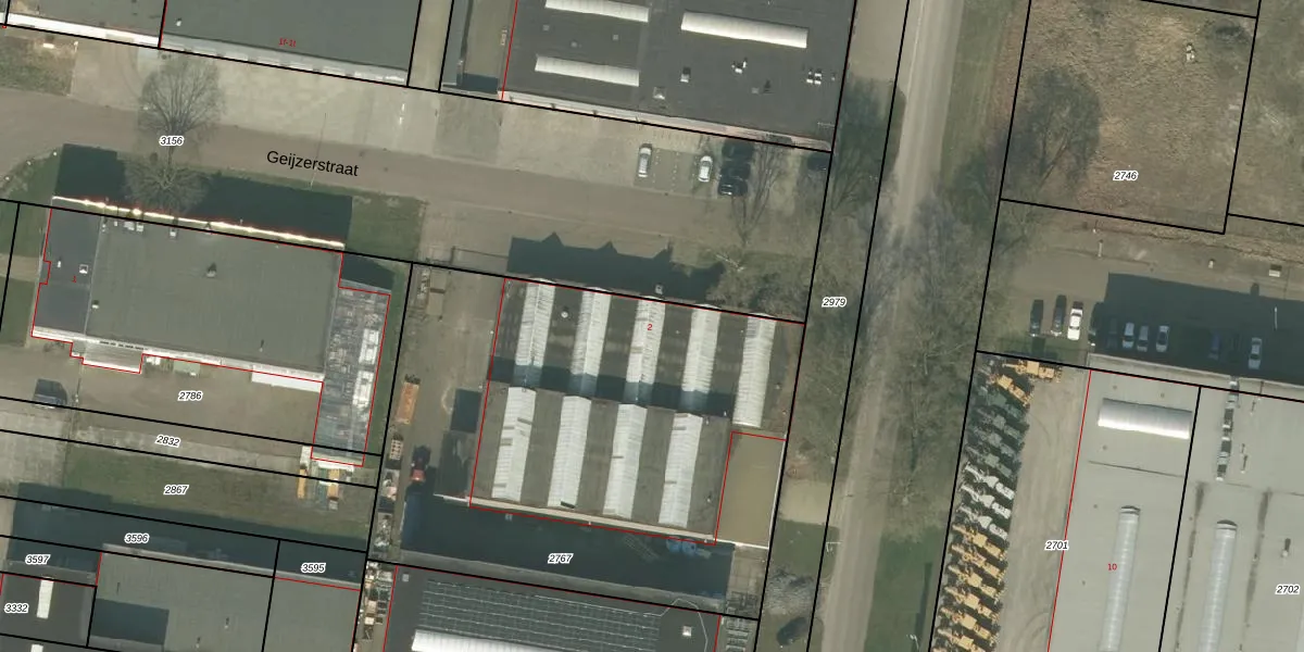 Het perceel waarop Geijzerstraat 2 staat heeft een oppervlakte van 2809 m². Dit is een zeer groot perceel. De perceeloppervlakte wordt geregistreerd door het Kadaster. Gedetailleerde informatie over de maten van dit perceel kunt u vinden in het rapport Kadastrale kaart met maatvoering van Geijzerstraat 2.