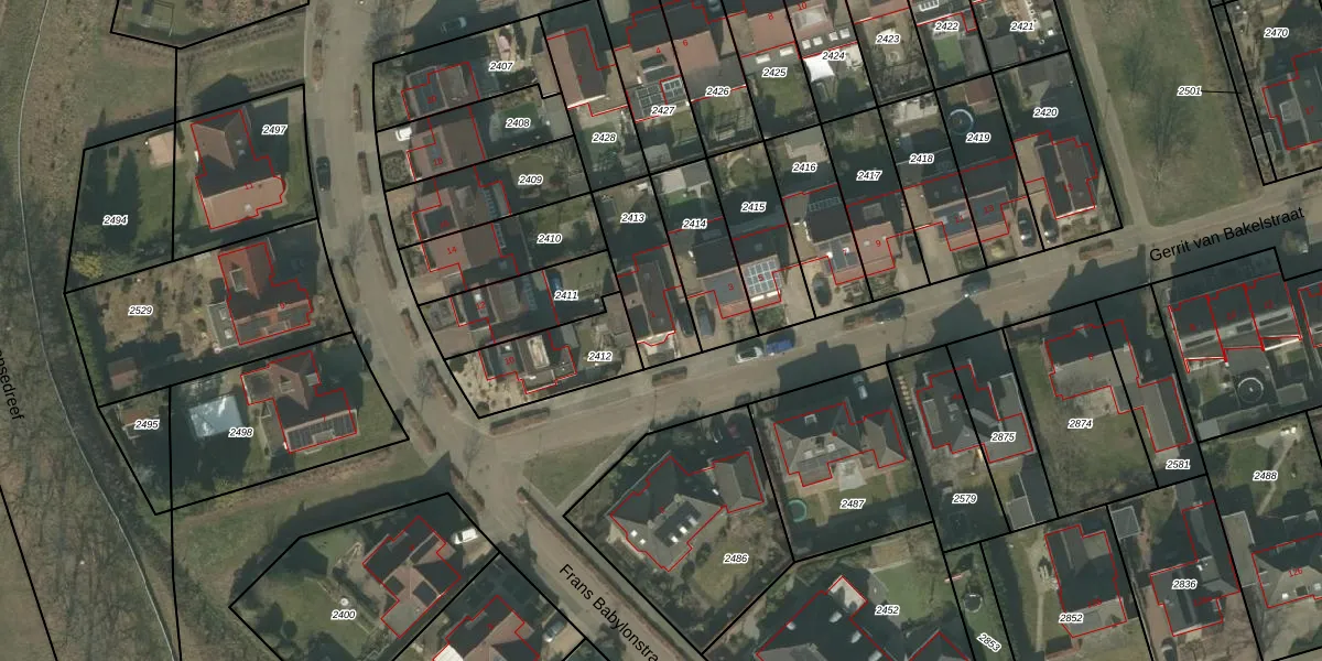 Gerrit van Bakelstraat 1 is gelegen op kadastraal perceel DNE00B2413. Deze kadastrale aanduiding is uniek en wordt gebruikt door het Kadaster om eigendomsrechten en andere zakelijke rechten vast te leggen. Het perceel maakt onderdeel uit van de kadastrale gemeente Deurne.