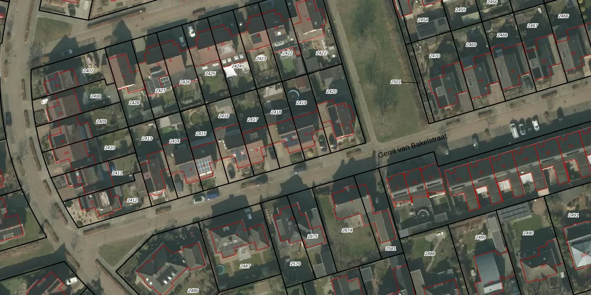 Gerrit van Bakelstraat 11 is gelegen op kadastraal perceel DNE00B2418. Deze kadastrale aanduiding is uniek en wordt gebruikt door het Kadaster om eigendomsrechten en andere zakelijke rechten vast te leggen. Het perceel maakt onderdeel uit van de kadastrale gemeente Deurne.
