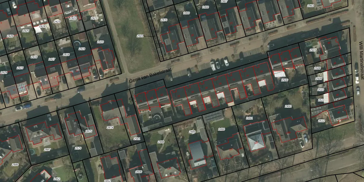 Het perceel waarop Gerrit van Bakelstraat 14 staat heeft een oppervlakte van 2062 m². Dit is een zeer groot perceel. De perceeloppervlakte wordt geregistreerd door het Kadaster. Gedetailleerde informatie over de maten van dit perceel kunt u vinden in het rapport Kadastrale kaart met maatvoering van Gerrit van Bakelstraat 14.