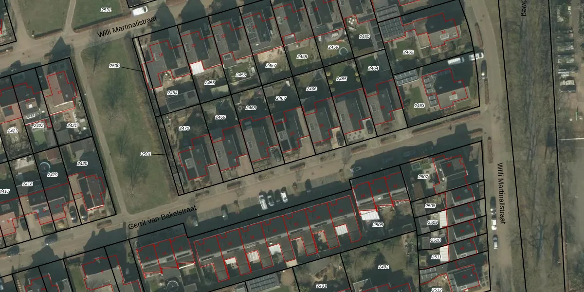 Het perceel waarop Gerrit van Bakelstraat 23 staat heeft een oppervlakte van 308 m². Dit is een groot perceel. De perceeloppervlakte wordt geregistreerd door het Kadaster. Gedetailleerde informatie over de maten van dit perceel kunt u vinden in het rapport Kadastrale kaart met maatvoering van Gerrit van Bakelstraat 23.