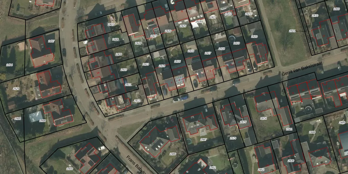 Gerrit van Bakelstraat 3 is gelegen op kadastraal perceel DNE00B2414. Deze kadastrale aanduiding is uniek en wordt gebruikt door het Kadaster om eigendomsrechten en andere zakelijke rechten vast te leggen. Het perceel maakt onderdeel uit van de kadastrale gemeente Deurne.