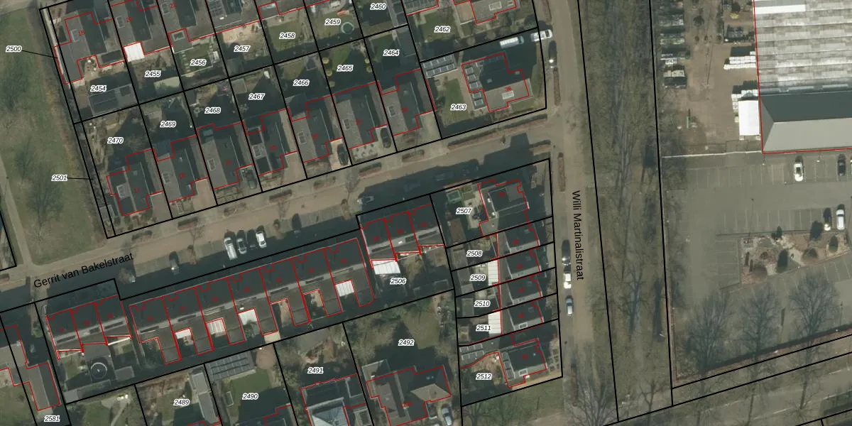 Het perceel waarop Gerrit van Bakelstraat 32 staat heeft een oppervlakte van 2062 m². Dit is een zeer groot perceel. De perceeloppervlakte wordt geregistreerd door het Kadaster. Gedetailleerde informatie over de maten van dit perceel kunt u vinden in het rapport Kadastrale kaart met maatvoering van Gerrit van Bakelstraat 32.