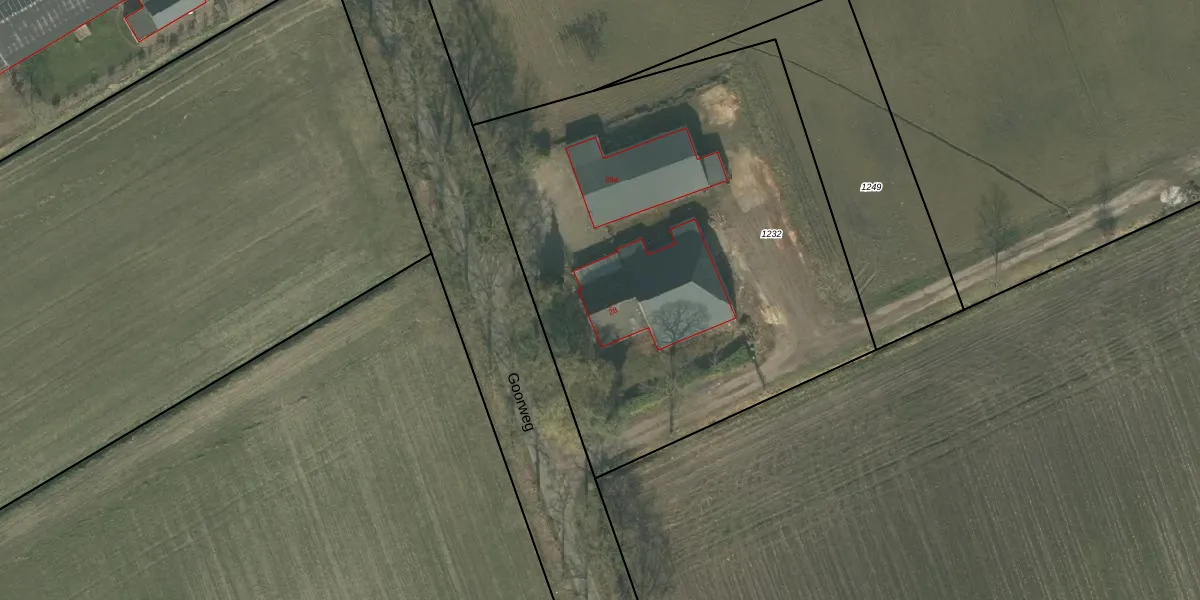 Het perceel waarop Goorweg 28 staat heeft een oppervlakte van 3030 m². Dit is een zeer groot perceel. De perceeloppervlakte wordt geregistreerd door het Kadaster. Gedetailleerde informatie over de maten van dit perceel kunt u vinden in het rapport Kadastrale kaart met maatvoering van Goorweg 28.