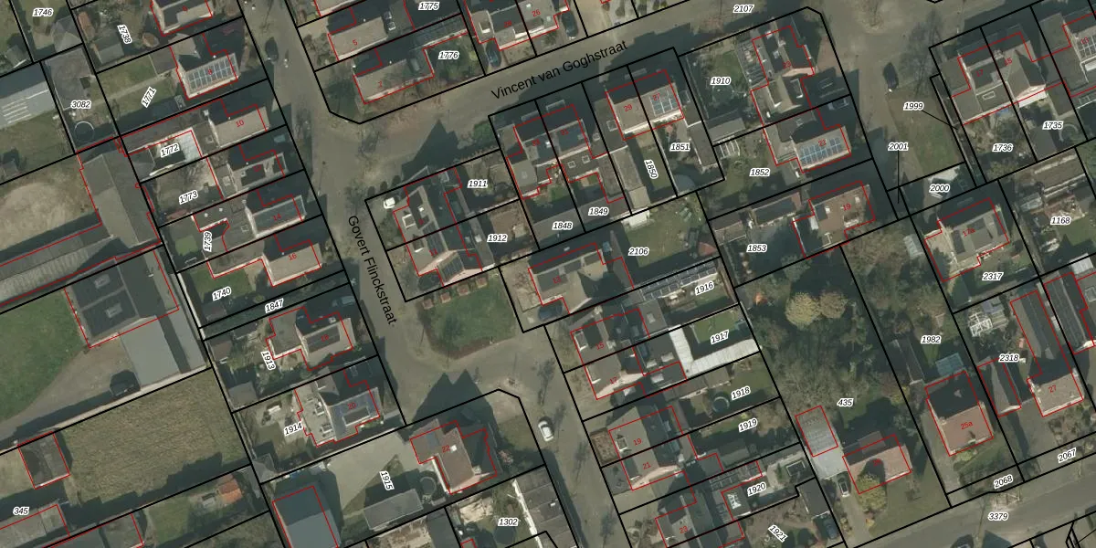 Het perceel waarop Govert Flinckstraat 13 staat heeft een oppervlakte van 499 m². Dit is een groot perceel. De perceeloppervlakte wordt geregistreerd door het Kadaster. Gedetailleerde informatie over de maten van dit perceel kunt u vinden in het rapport Kadastrale kaart met maatvoering van Govert Flinckstraat 13.