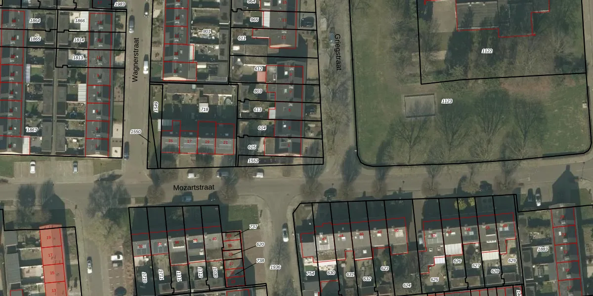 Gebruik de zoekbalk of klik op een perceel voor informatie over de adressen binnen dit perceel.