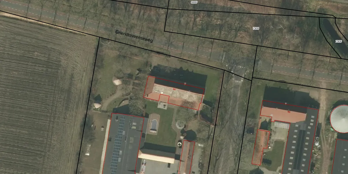 Het perceel waarop Griendtsveenseweg 66 staat heeft een oppervlakte van 1,4 ha. Dit is een zeer groot perceel. De perceeloppervlakte wordt geregistreerd door het Kadaster. Gedetailleerde informatie over de maten van dit perceel kunt u vinden in het rapport Kadastrale kaart met maatvoering van Griendtsveenseweg 66.