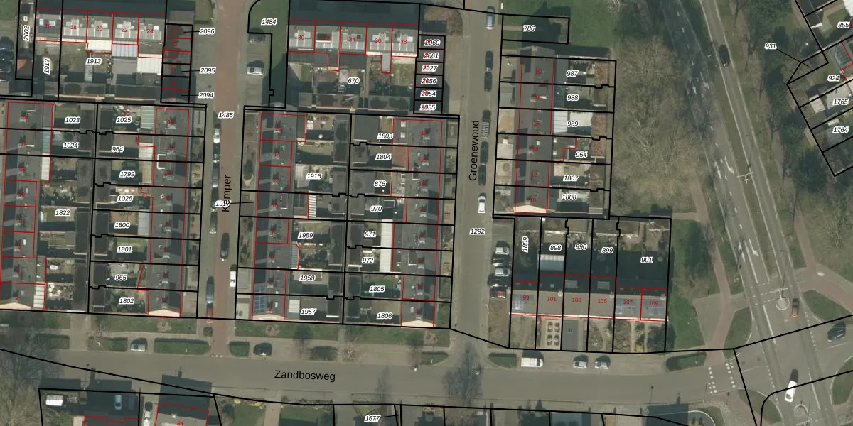 Gebruik de zoekbalk of klik op een perceel voor informatie over de adressen binnen dit perceel.