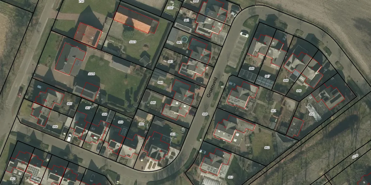 Het perceel waarop Groenveld 39 staat heeft een oppervlakte van 357 m². Dit is een groot perceel. De perceeloppervlakte wordt geregistreerd door het Kadaster. Gedetailleerde informatie over de maten van dit perceel kunt u vinden in het rapport Kadastrale kaart met maatvoering van Groenveld 39.